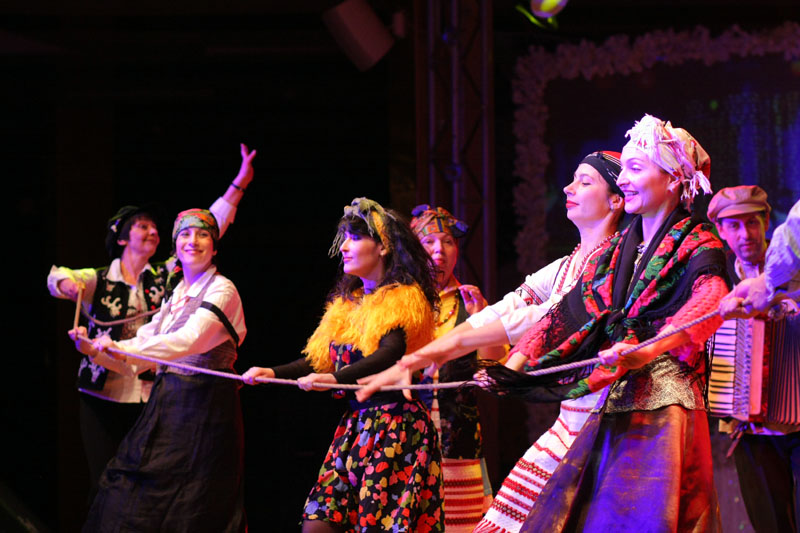 Но вот гости расселись за праздничные столы с зажженными свечами и угощением и – звучат фанфары! Под видеоряд и рассказ Полины Блиндер (которая весь вечер ведет конферанс вместе с Кирой Верховской) о времени, сопутствовавшем возрождению еврейской жизни в СНГ, начинается «Рассвет», а за ним – «Воскрешение из мертвых» – мистика театра «Мигдаль-Ор», свершающаяся у нас на глазах.