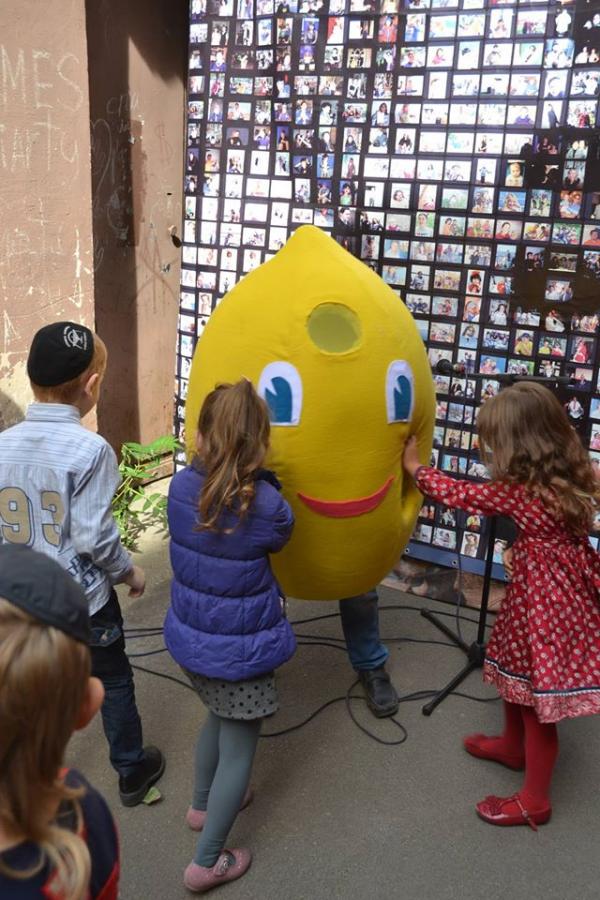А всего через день начался новый учебный год, но ненадолго. Потому что как раз подоспело множество праздничных дней. Тем более что череду традиционных осенних еврейских праздников в этом году пополнили еще и «Дни еврейской культуры». На этом городском празднике в одесском городском саду наши уже подросшие и уже не груднички показали своих чудесных одесских «Котов». Но чтобы головы от успехов не закружились и мы не забыли о главном к нам в «Мазл-Тов» как всегда прилетели курочка и петух на капарот. Ну а на Суккот все смогли познакомиться с нашей новой группой грудничков, которые сыграли в утреннике четыре вида растений, а малыши, которые еще совсем недавно были такими же крохами, сыграли роль ушпизин. Все желающие потанцевать смогли это сделать по под песню «Кан ноладти» в танце о том, как надо благословлять арба миним. Но главным событием для малышей стали «Приключения синьора Лимона» от творческой группы «Мазл-Това». История получилась о том, что жил-был зеленый и вредный синьор Лимон, который не хотел дружить, не хотел играть, не хотел идти на праздник. Но его ждали такие приключения, которые сами его привели к детям, к новым друзьям и на Суккот. И именно благодаря этим приключениям и новым друзьям он созрел и стал из кислого лимона ароматным Этрогом. Обрадованный таким собственным превращением он фотографировался со всеми желающими и угощал их гостинцами.