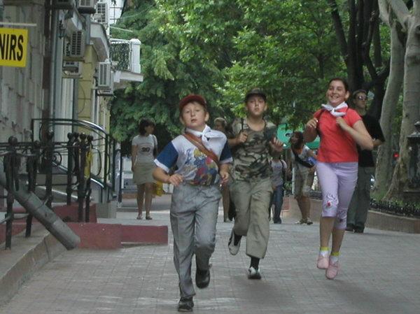 Во время нашего ориентирования хотелось вспомнить песню «Погоня», или фразу «погоня — какой детективный сюжет не обходится без нее...», потому что все команды дышали друг другу в затылки. Как они рвались к победе!!! Они нанесли визит главным достопримечательностям нашего города: мемориалам Жаботинскому, Остапу Бендеру, побывали у памятников Утесову, Дюку, Апельсину, пронеслись с небольшой остановкой мимо Пушки на Приморском бульваре, где ждали их каверзные вопросы, подготовленные Аллой Подольской, Момот Катей, Нюсей Верховской и Женей Концеусом, Раей (помните прошлую летнюю площадку?) и Вовой Чаплиным.