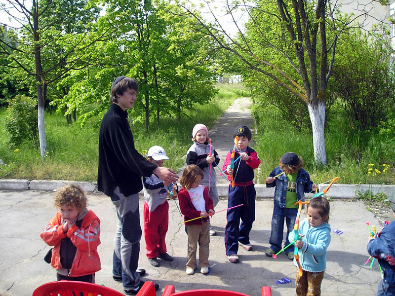 Самые старшие из малышей, 5-летние, были под присмотром Кирилла. Он им не только недельную главу рассказывал, но и из луков обучил стрелять. А в столовой являлся наглядным примером того, «как надо кушать, чтобы вырасти таким большим, умным и красивым!».