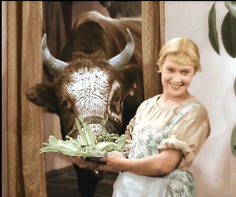 На самом деле, по моим уже взрослым впечатлениям, фильм был насквозь ироничным, стебным. В разгар исполнения наилиричнейшей арии пастух Костя сидит на дереве, под ним ломается ветка, и он шумно грохается на землю. Анюта с сияющими глазами поет о любви, одновременно отбиваясь от назойливых комаров. Я уж не говорю о пресловутом разорении банкета рогатым скотом – у вас никаких ассоциаций это не вызывает? А мне что-то смутно видится про захват Зимнего пьяными матросами…