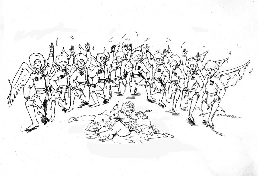 ...Ну и, конечно, стая лебедей... (Вроде похоже на сказку Андерсена, но как бы по мотивам... Чтобы не сказать, что сюжет украден и переделан. Теперь пишут так: по мотивам.) Лебеди, да, братья той самой Доброй Девушки – принцессы. Конечно, если бы это была восточная сказка, то эта стая крылатых джигитов быстренько порвала бы всех колдунов, дураков и прочих монстров, кто покушался на честь их сестры. А так они, эти лебеди, просто летали и курлыкали. Поскольку, когда были еще принцами и ступили на шаткий путь тотальной борьбы со вселенским злом, ведьма превратила их в обычных северных лебедей. Лебедь, конечно, птица красивая, но в хозяйстве бесполезная. Ни зарплаты, ни гвоздь забить, ни мусор вынести.